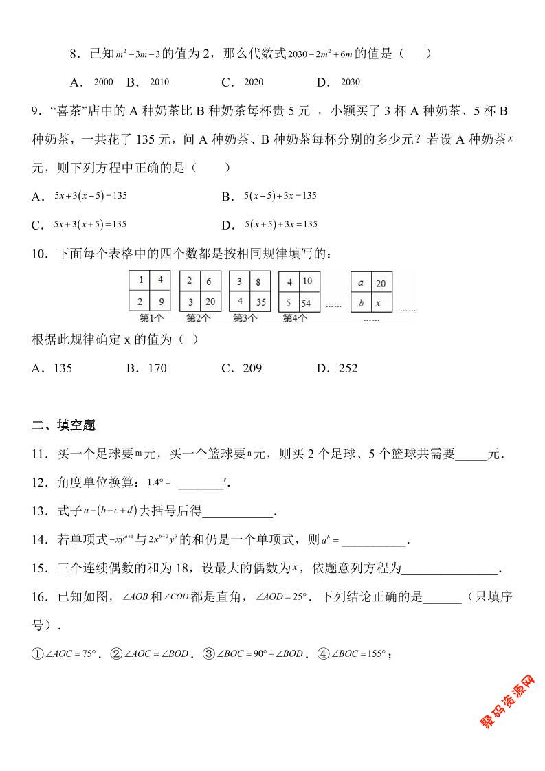 聚码网 七年级 新七年级上数学期末考试精准押题卷(人教版) http://www.appstore168.com/100012.html