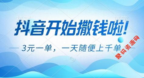 抖音开始撒钱拉,3米一单,一天随便上千单,抖音福利推广项目【揭秘】