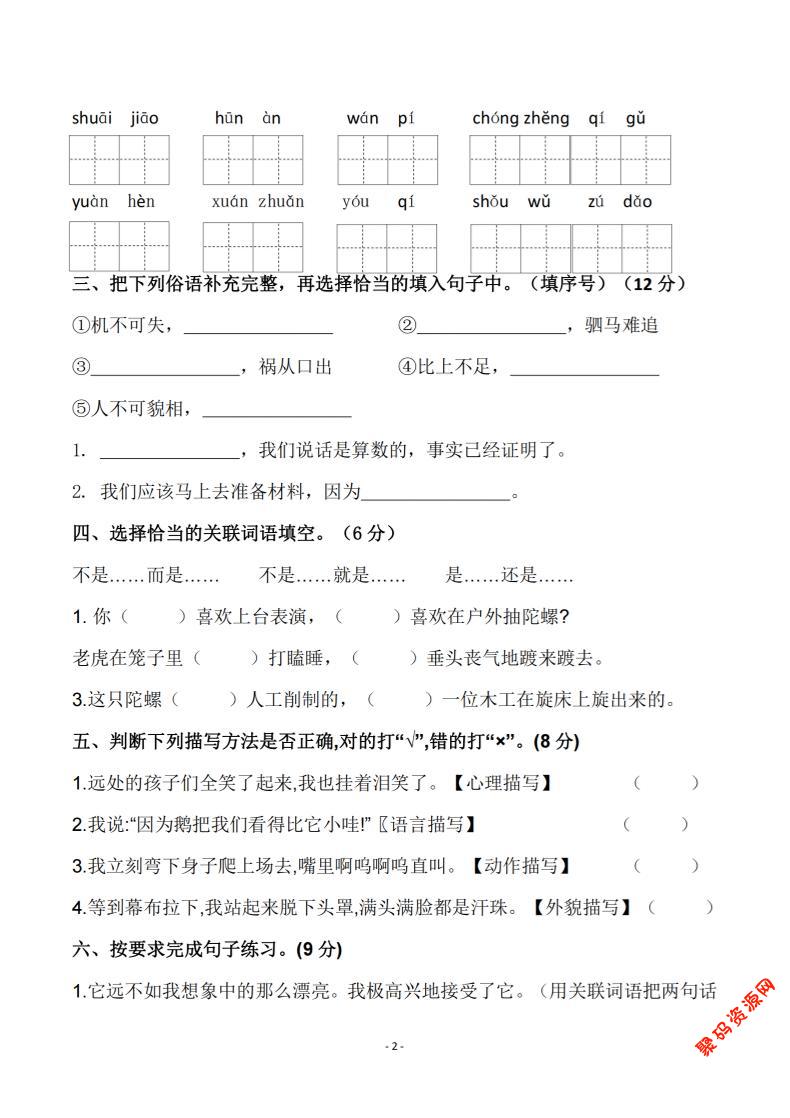 聚码网 四年级 四年级上语文第六单元测试卷2 http://www.appstore168.com/100174.html