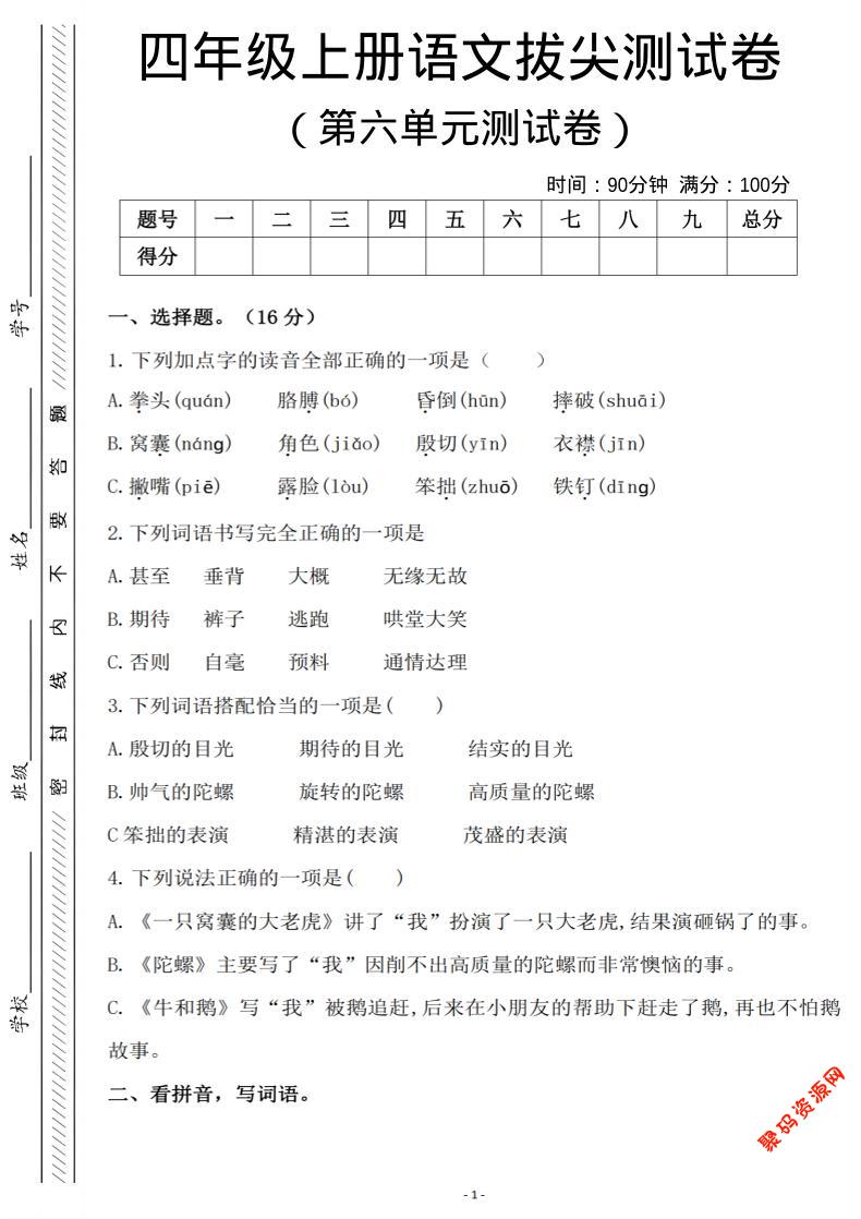 - 四年级上语文第六单元测试卷1 2025-12-14