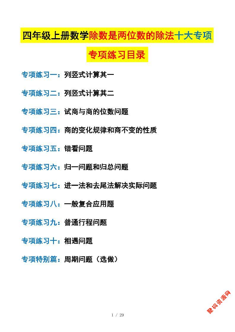 聚码网 四年级 四上数学除数是两位数的除法十大专项训练(含答案解析112页) http://www.appstore168.com/100434.html