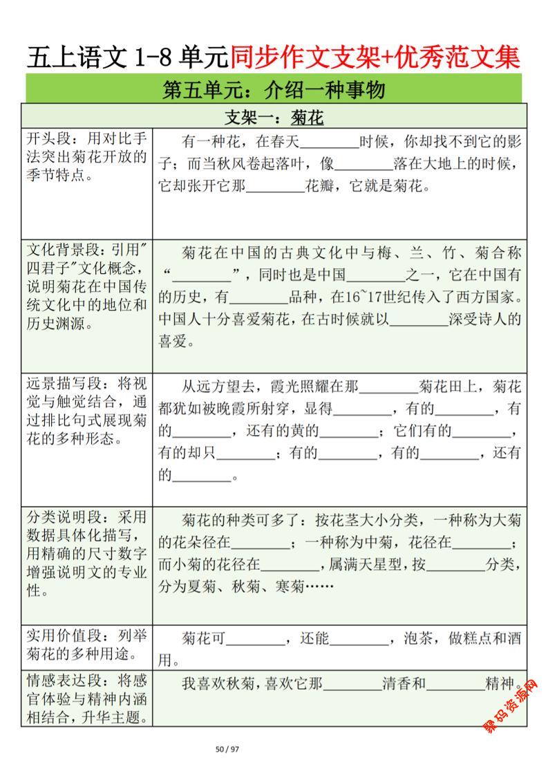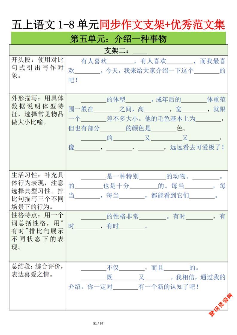 聚码网 五年级 五上语文第五单元作文支架+优秀范文12页 http://www.appstore168.com/100461.html