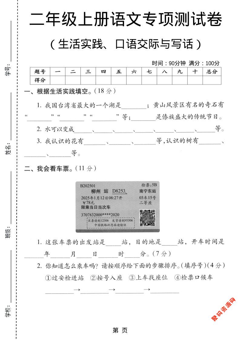 聚码网 二年级 二年级上语文生活实际、口语交际与写话专项测试卷 http://www.appstore168.com/100521.html