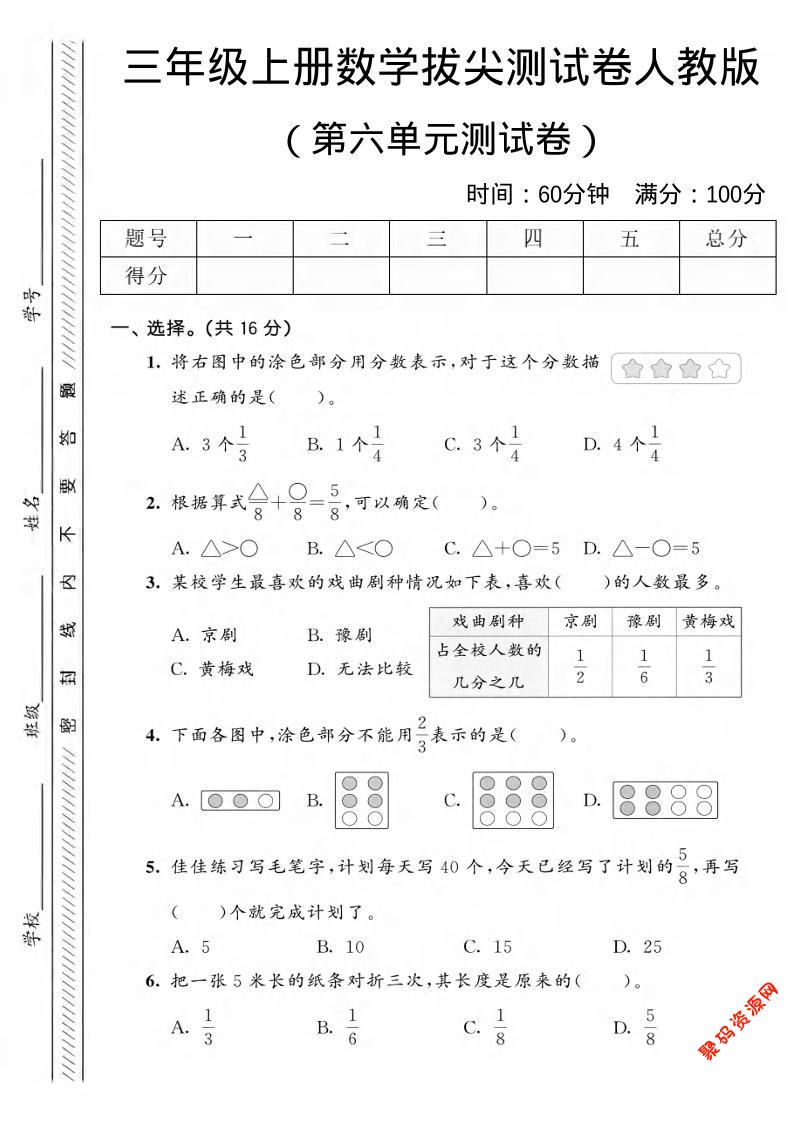 聚码网 三年级 三年级上数学第六单元拔尖测试卷2《人教版》 http://www.appstore168.com/100624.html