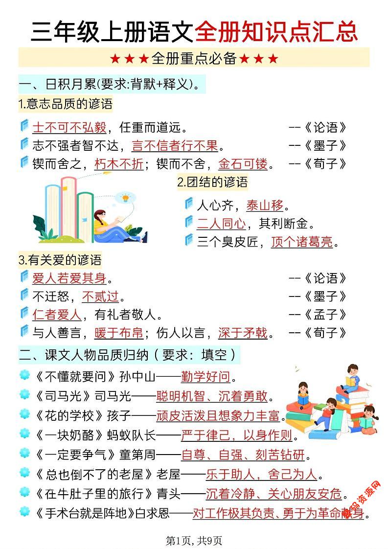 - 新三上语文全册知识点汇总(9页) 2025-12-11