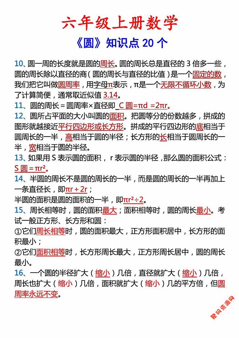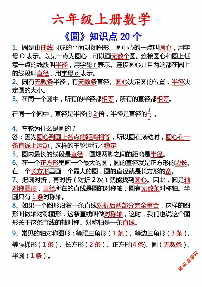 聚码网 六年级 六年级上册数学圆的20个考点 http://www.appstore168.com/100915.html
