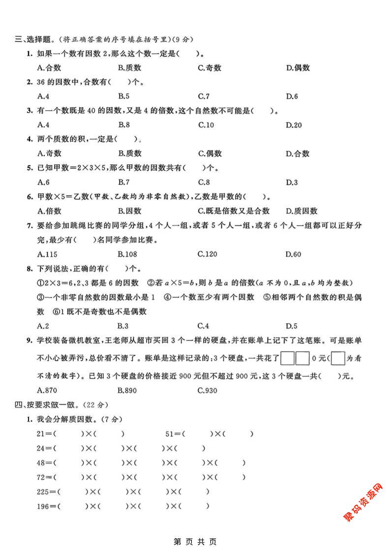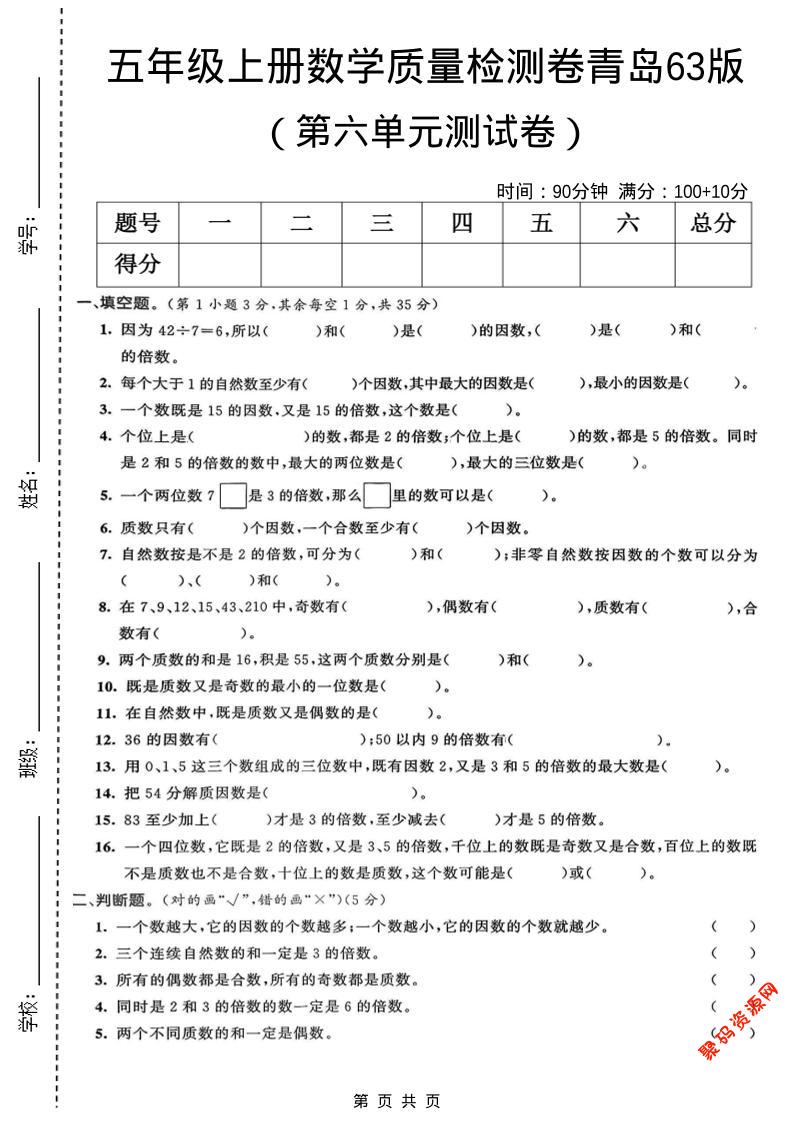 聚码网 五年级 五年级上数学第六单元质量检测卷1《青岛63版》 http://www.appstore168.com/101188.html