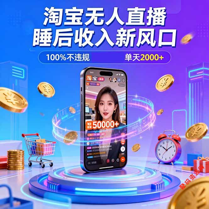 聚码网 网赚项目 淘宝无人直播,不违规不封号,直播100小时卖了5万,年底旺季! http://www.appstore168.com/101206.html