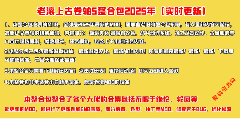 4.本整合包非常适合小白新手玩家,想玩老滚MOO的玩家