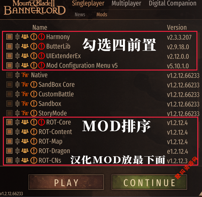 0.ROT-CNs汉化mod的排序一定要在最后面。