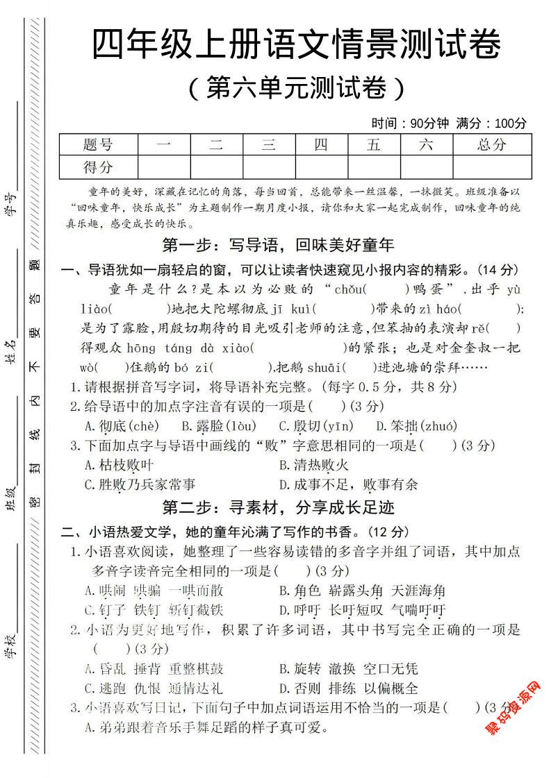 聚码网 四年级 四年级上语文第六单元测试卷4 http://www.appstore168.com/102064.html
