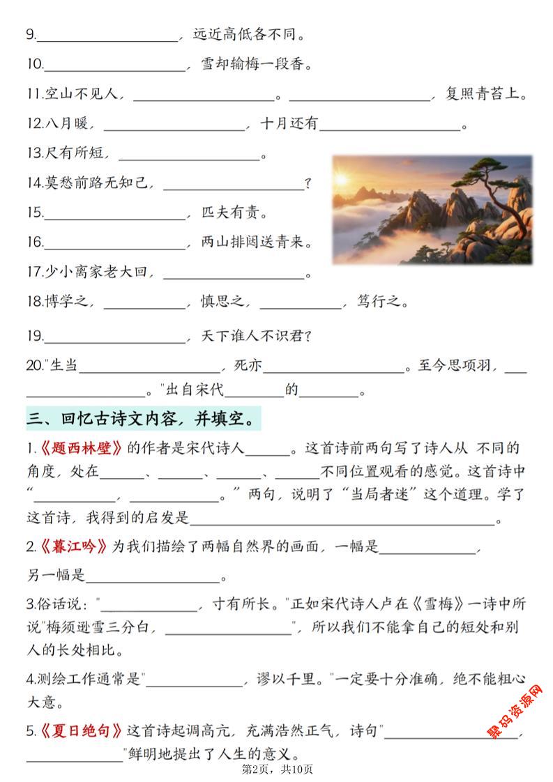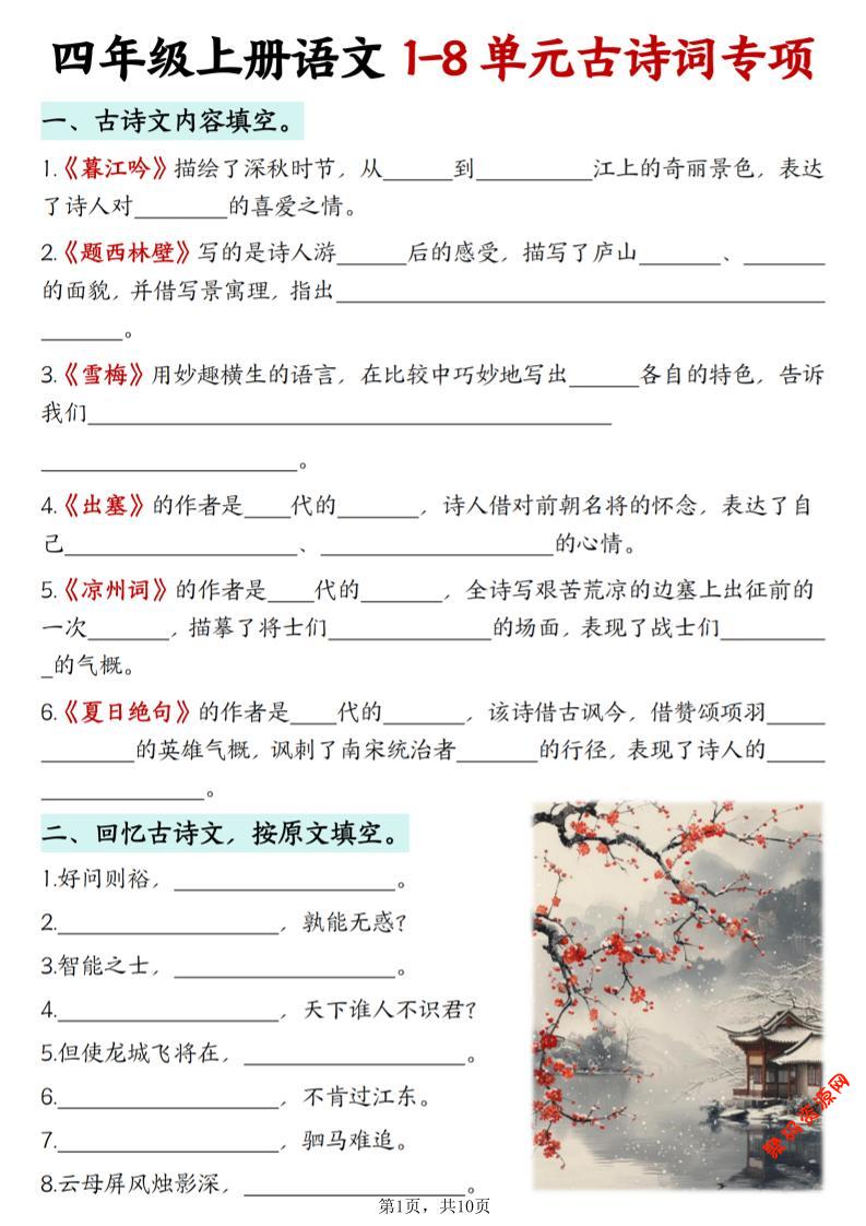 - 四上语文1-8单元古诗词专项(含答案10页) 2025-12-14