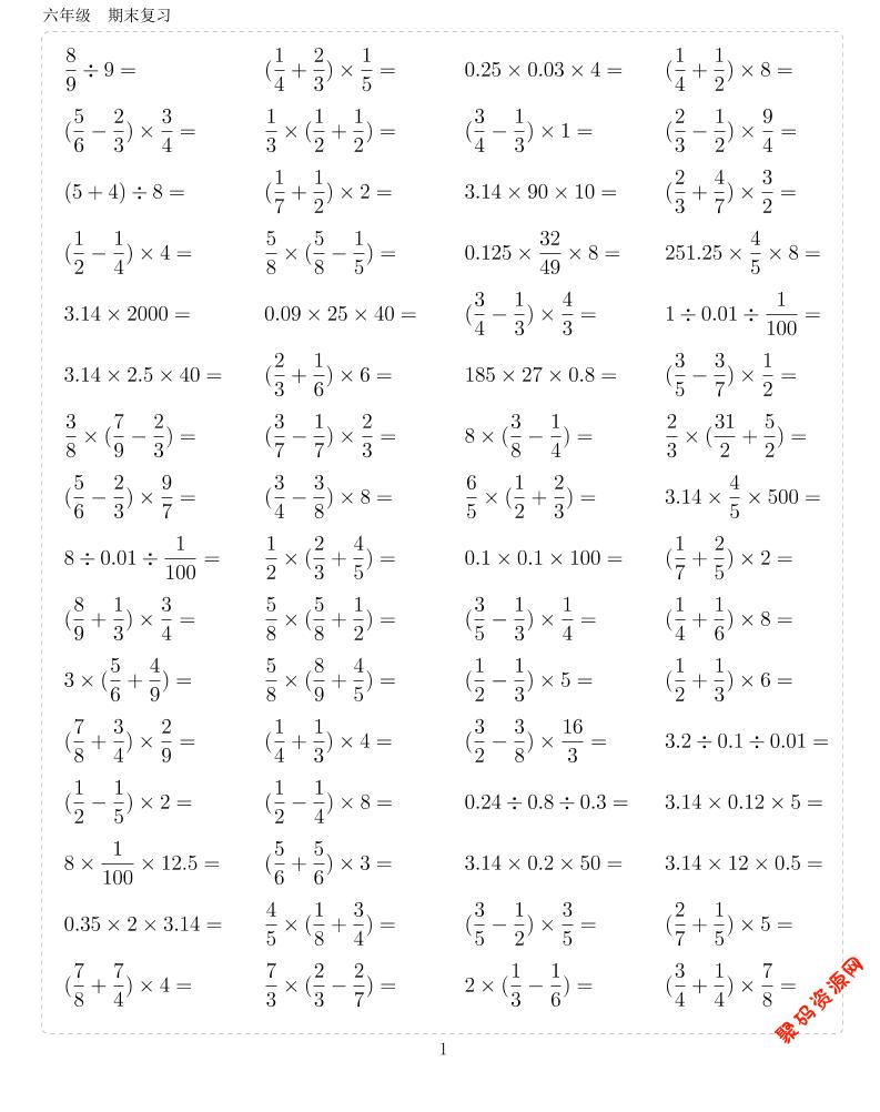 聚码网 六年级 六年级上册数学期末复习10000题 http://www.appstore168.com/102090.html