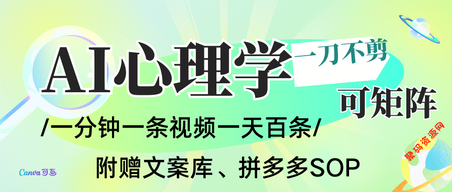 项目介绍:心理学赛道,是个闷声发大财的赛道,以前总觉得这个赛道,需要很高的门槛,要么知识,要么睿智,要么职业,要么专业,现在有了AI门槛,一夜之间降低不少,小白都能轻松参与。心理学为啥说是闷声发大财呢?有数据表明心理健康类短视频日均播放量突破30 亿次,相当于每个中国人每天观看 2.1 次,并且心理咨询市场规模预计到 2025 年达300 亿元,今天我们分享的赛道是,心理学的简笔画赛道。使用AI辅助,30秒就可以生成一条视频,飞速快速,高效,视频还非常棒!很多小伙伴都知道AI是风口,但是真的不是谁都能切中,都能跟上,都能学会都能赚到钱,很多小小伙伴徘徊在提示词,很多小伙伴生图一眼假,很多小伙伴生成视频很慢,还有很多小伙伴不会脚本和文案,还有人,半天剪辑不了一条,这样怎么样能做好自媒体呢?就这效率,这个频率,你发布素材一条都要累死累活在家里做一天视频才能完成 ,然后还不一定都有很准确的网感,做出来的视频,自己除了一点点的成就感之外,根本都不敢多看一样,自己都觉得比较尬,没有信心,那么可想而知做出来的视频,怎么可能会有流量嘛!没有视频怎么做自媒体怎么搞钱呢?今天呢,就来给大家分享一条信息差,一刀不剪,一刀不切就能做好视频,还能无需任何处理直接就可以发布,然后可以自然而然开启获客了!然后小橱窗,带带书,带带素材,带带单词,带带课程,带货嘎嘎猛!你说,是不是赚钱更进一步了?你说,做账号是不是更简单,更容易了,想过个肥年的宝宝们,加油!加油吧,抓紧学好,干起来!