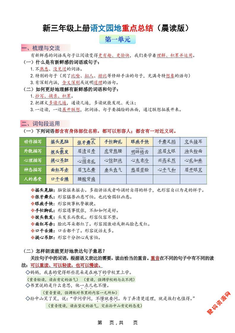 聚码网 三年级 新三上语文1-8单元语文园地重点总结(晨读晚练)20页 http://www.appstore168.com/102244.html
