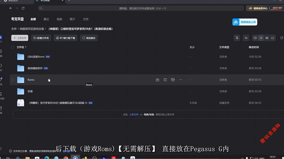 2. 新用户选择:下载(神龍哥)宝可梦系列38合1滤镜模拟器天马G前端 【解压即玩】 后下载(游戏Roms)【无需解压】 直接放在Pegasus G内