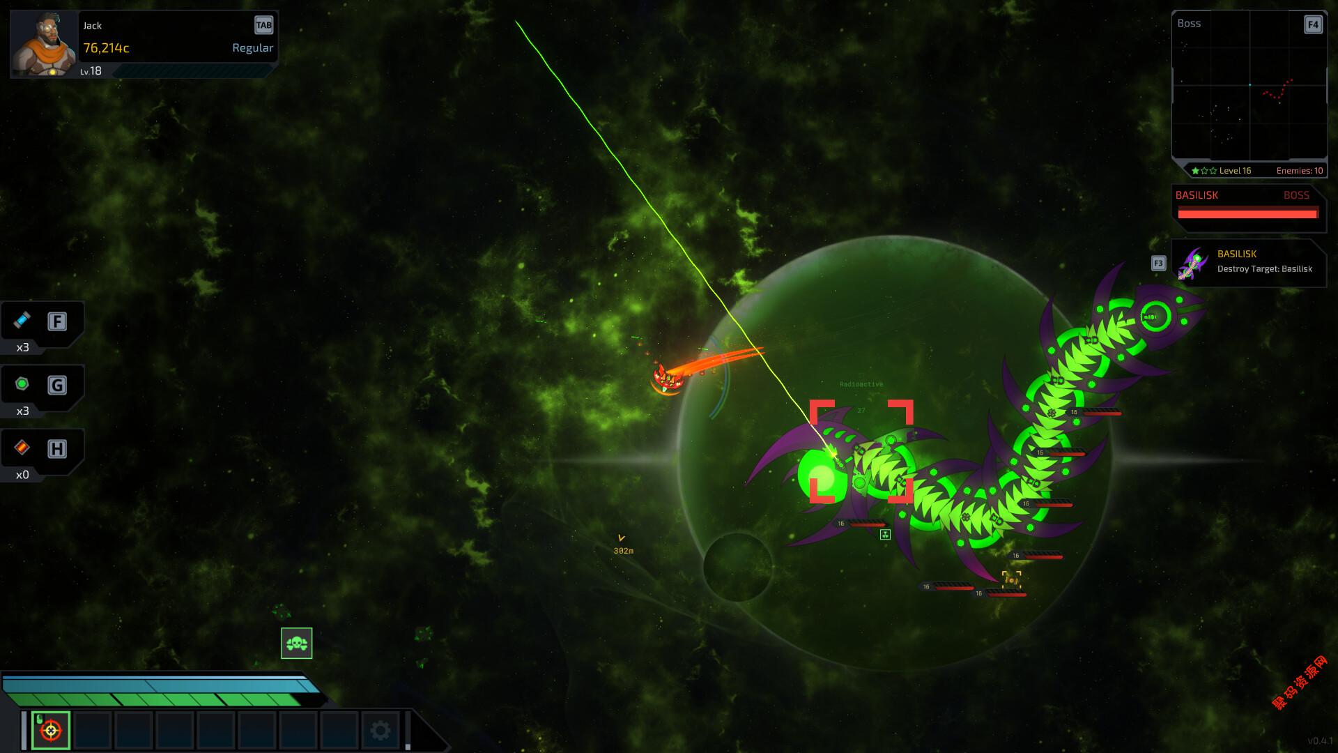 游戏画面绚丽,将太空的深邃与爆炸的璀璨结合,配合动感的电子音乐,战斗体验极具冲击力。游戏含中文并持续更新中,提供了丰富的可解锁内容和极高的重复游玩价值。