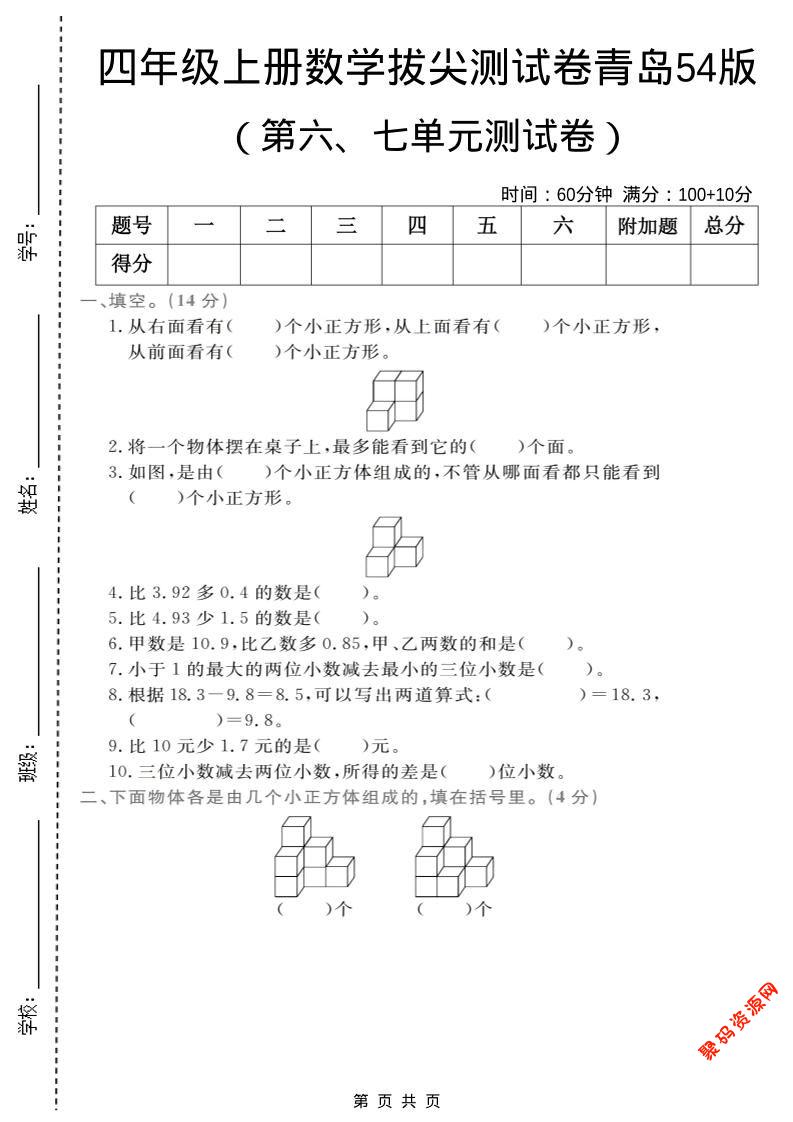 聚码网 四年级 四年级上数学第六、七单元拔尖测试卷《青岛54版》 http://www.appstore168.com/102830.html