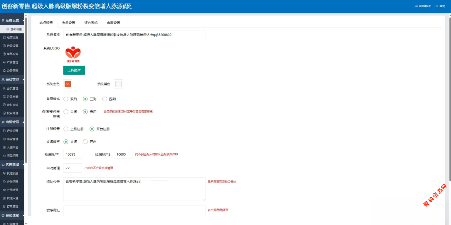 超级人脉,超级粉丝,众合鑫,爆粉人脉,创客新零售销货商城系统1-30星完整运营版