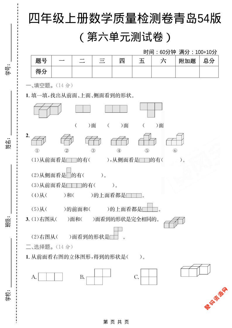 - 四年级上数学第六单元测试卷1《青岛63版》 2025-12-16