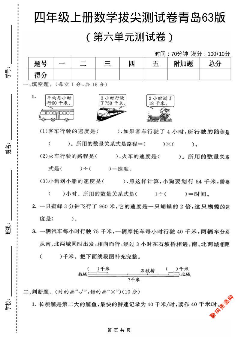 - 四年级上数学第七单元拔尖测试卷1《青岛63版》 2025-12-16