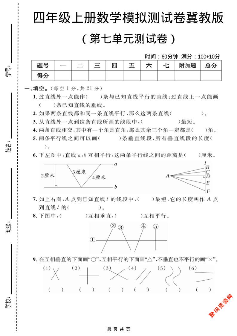 - 四年级上数学第七单元测试卷《冀教版》 2025-12-17
