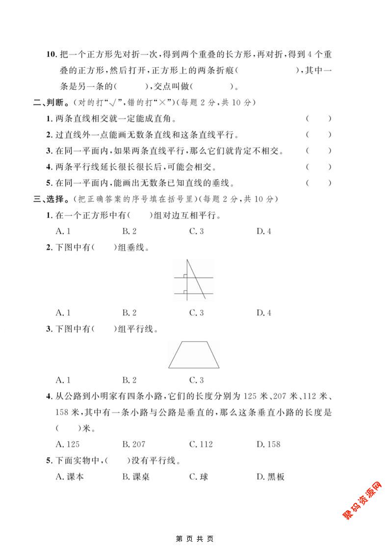 - 四年级上数学图形与几何专项检测卷《青岛54版》 2025-12-16