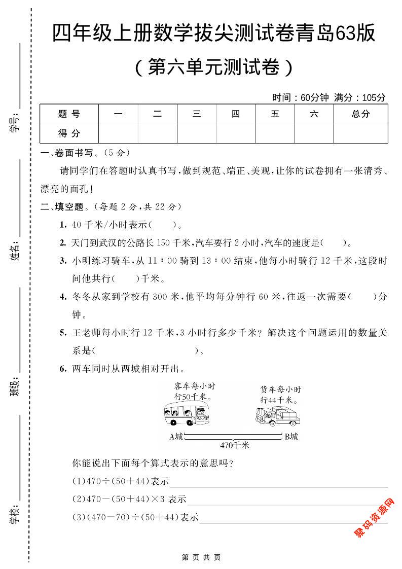 聚码网 四年级 四年级上数学第六单元测试卷2《青岛63版》 http://www.appstore168.com/103769.html