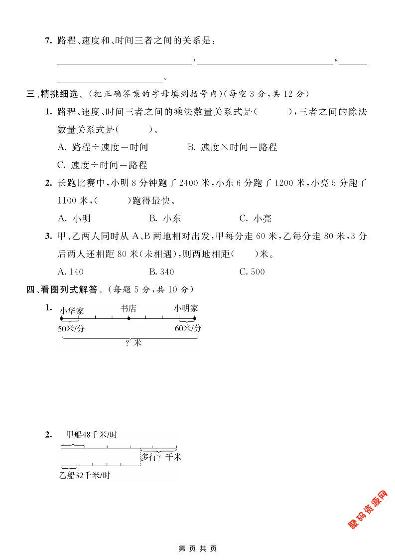 - 四年级上数学第七单元质量检测卷2《青岛54版》 2025-12-17