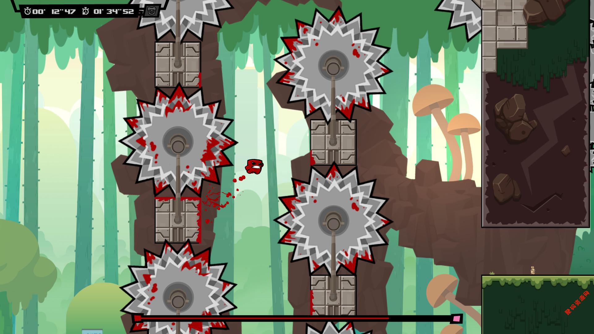 游戏采用全新的“短平快”关卡结构,数百个关卡被设计成能在几十秒内完成,但每一个拐角、每一次跳跃都暗藏杀机。你需要以肌肉记忆般的反应,在自动狂奔中预判路线,利用墙壁反弹、机关触发和仅有的操作,在锯片、盐堆和激光的缝隙中求生存。游戏画面在保留标志性血腥卡通风格的同时,动画更加流畅,特效更加炫酷。完整的中文支持与持续的补丁优化,确保了流畅的体验。更重要的是,本作带来了一个全新的故事:肉肉和绷带女孩的女儿“小 nugget ”被反派胎儿博士绑架,一场跨越多重世界的营救大冒险就此展开。