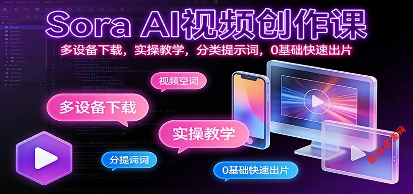 聚码网 AI技术 Sora AI视频创作课:多设备下载,实操教学,分类提示词,0基础快速出片 http://www.appstore168.com/104205.html