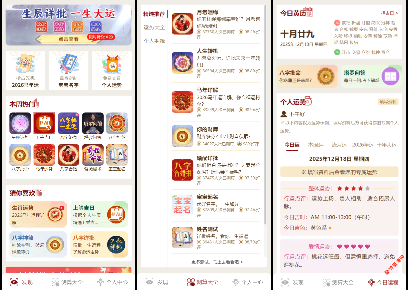 聚码网 源码资源 2026马年新版测算系统源码 全开源修复版 支持易支付带教程 http://www.appstore168.com/104239.html