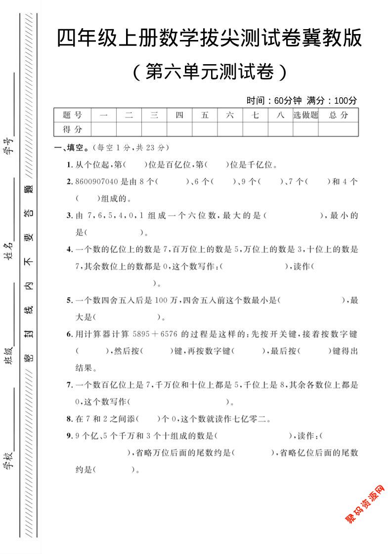 聚码网 四年级 四年级上数学第六单元测试卷3《冀教版》 http://www.appstore168.com/104369.html