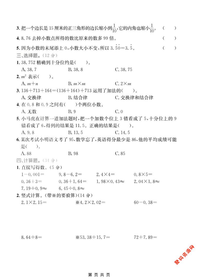 聚码网 四年级 四年级上数学数与代数专项检测卷2《青岛54版》 http://www.appstore168.com/104387.html