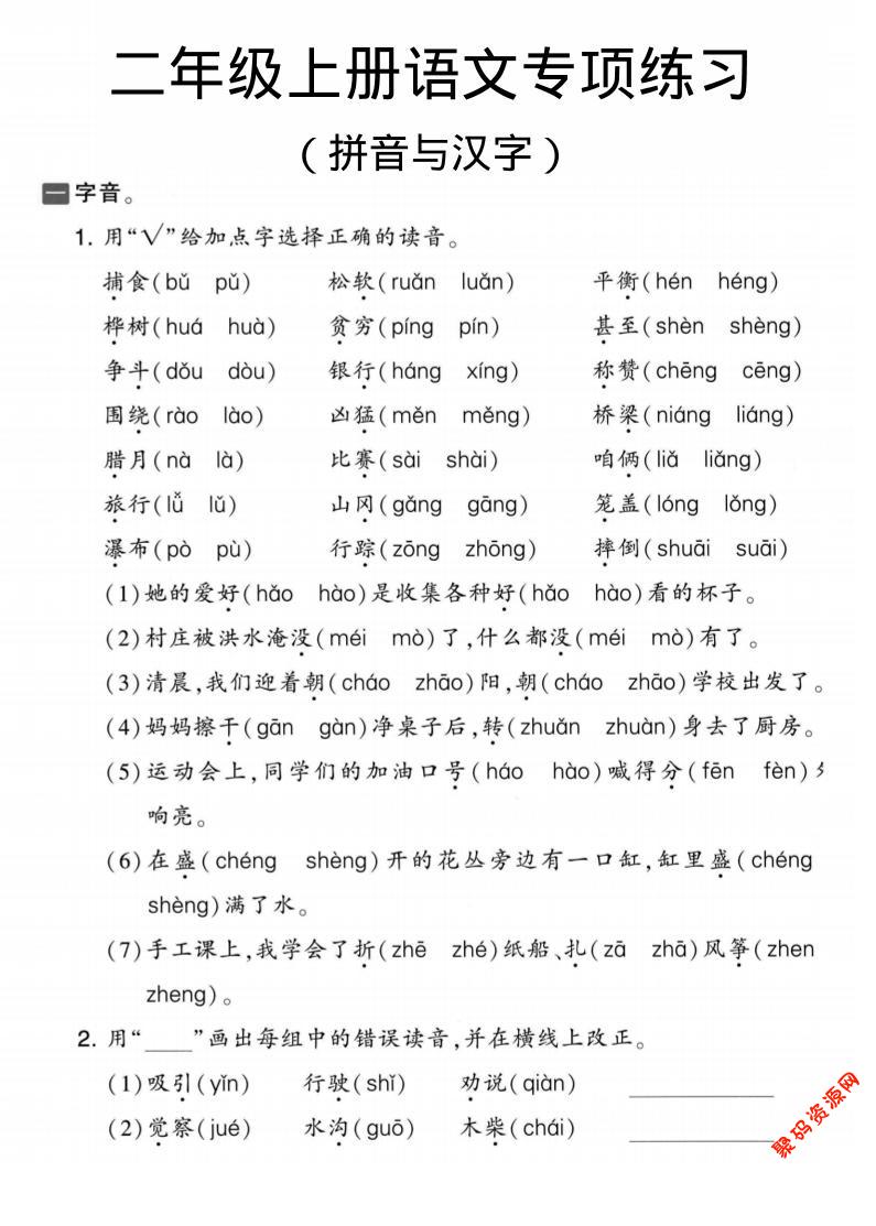 聚码网 二年级 二年级上语文拼音与汉字专项练习 http://www.appstore168.com/104397.html