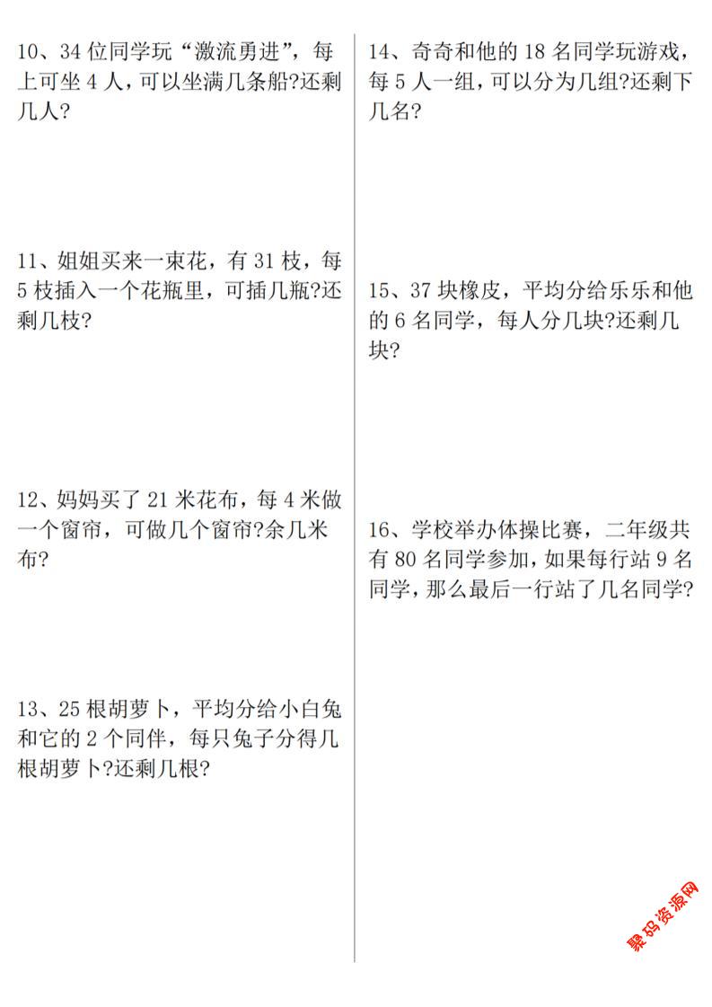 聚码网 二年级 二年级上数学《有余数的除法》九大专项 http://www.appstore168.com/104407.html