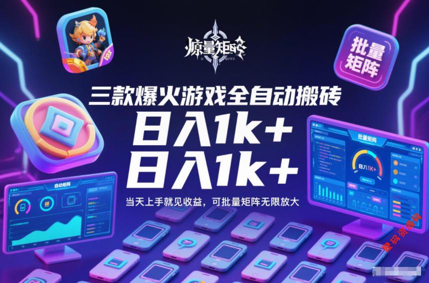三款爆火游戏全自动搬砖,日入1k+,当天上手就见收益,可批量矩阵无限放大【揭秘】