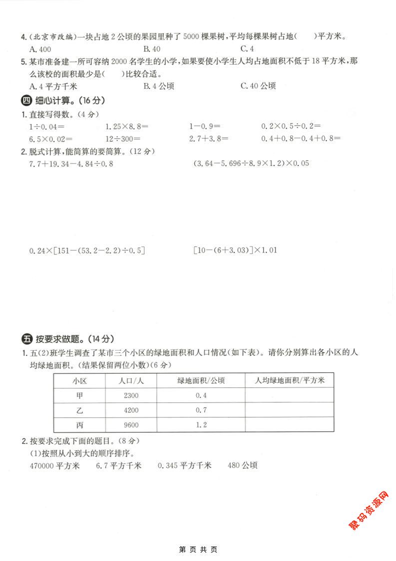 - 五年级上数学小数乘法与除法专项检测卷《青岛63版》 2025-12-14