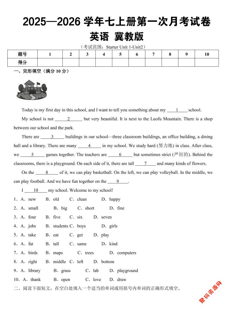 - 七年级上英语第一次月考(冀教版) 2025-12-20