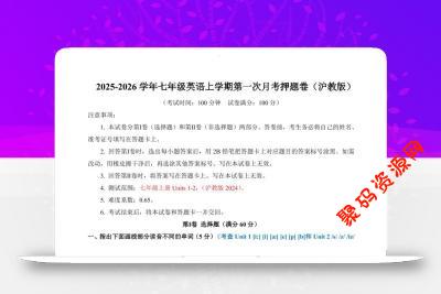 - 七年级上英语第1次月考卷(沪教版) 2025-12-20