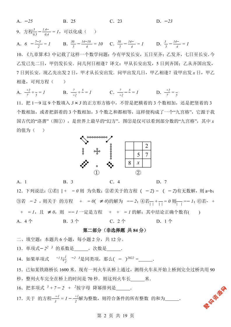 聚码网 七年级 七年级上数学第3次月考卷02(人教版) http://www.appstore168.com/104856.html