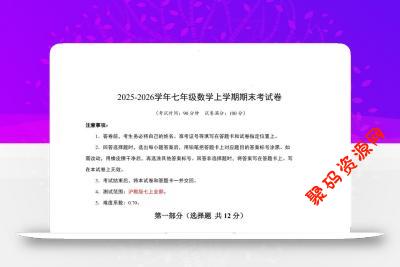 - 七年级上数学期末考试卷(沪教版) 2025-12-20