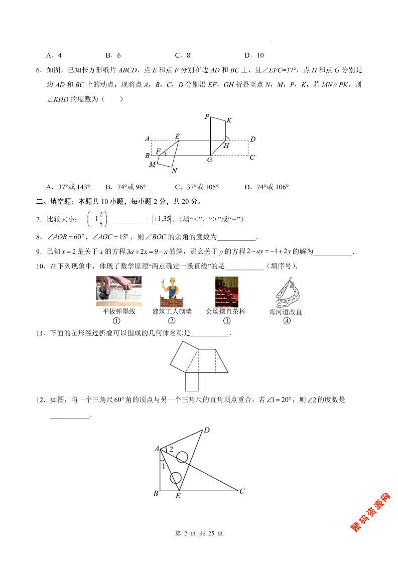 - 七年级上数学第3次月考卷02(人教版) 2025-12-20