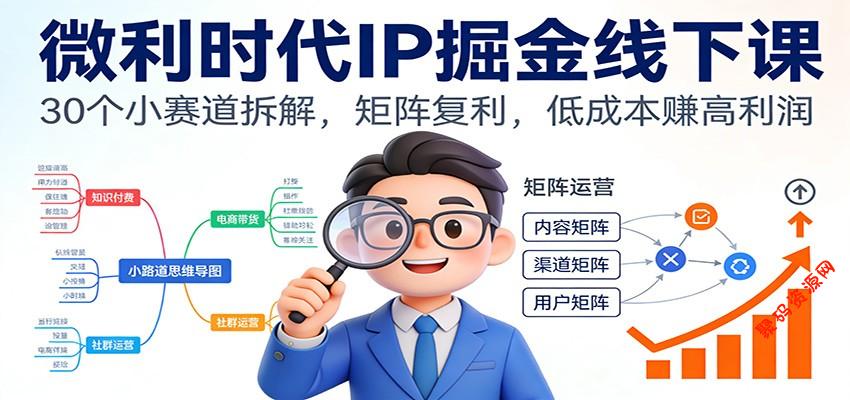 微利时代IP掘金线下课:30个小赛道拆解,矩阵复利,低成本赚高利润