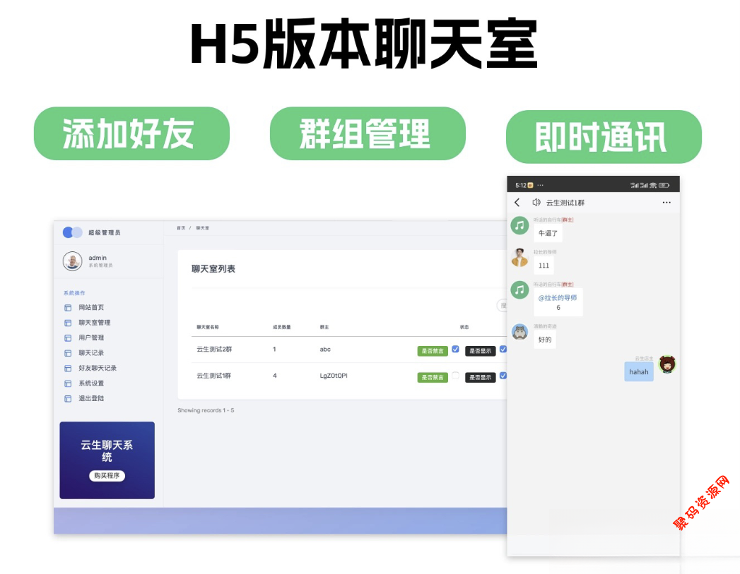 聚码网 源码资源 群聊源码无限建群创群H5聊天室系统即时沟通语音提醒聊天系统 http://www.appstore168.com/104962.html