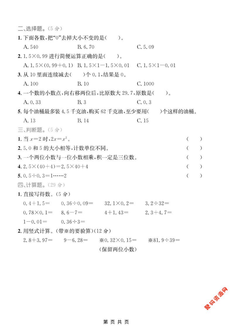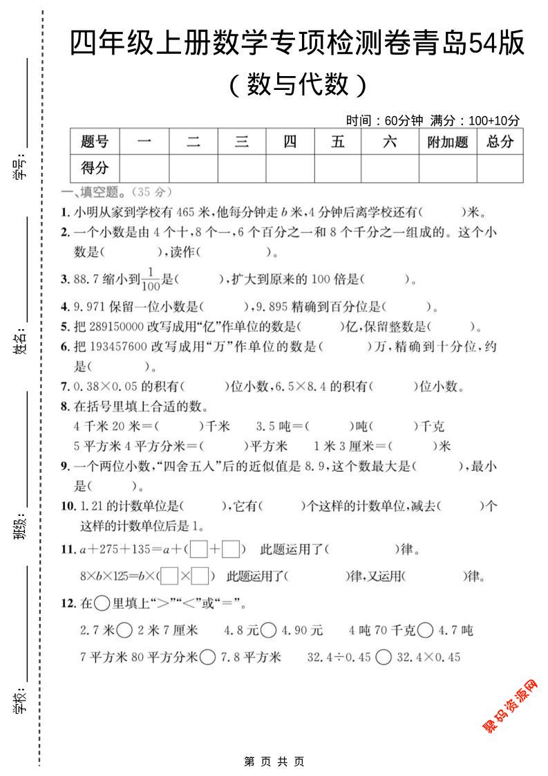 聚码网 四年级 四年级上数学数与代数专项检测卷1《青岛54版》 http://www.appstore168.com/104981.html