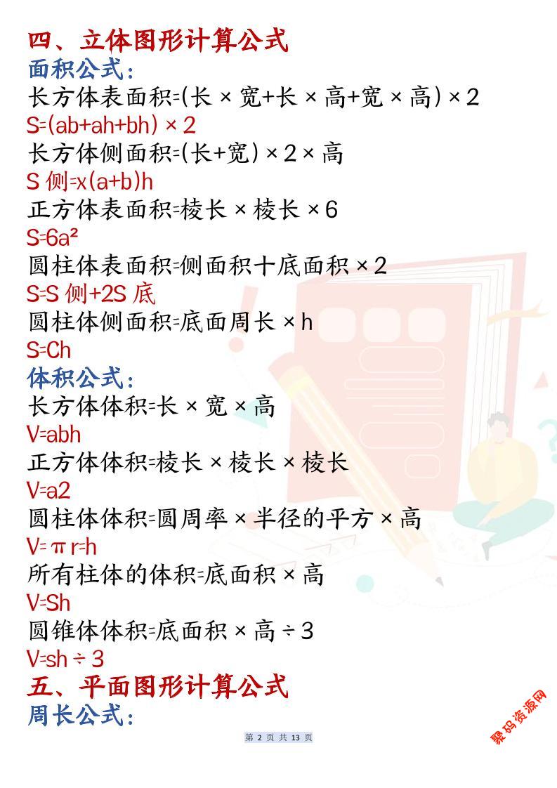 聚码网 六年级 六上数学必背公式汇总(13页) http://www.appstore168.com/104984.html