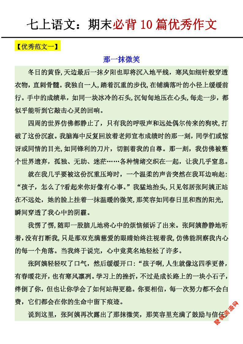 - 七年级上语文期末必背10篇优秀作文 2025-12-21