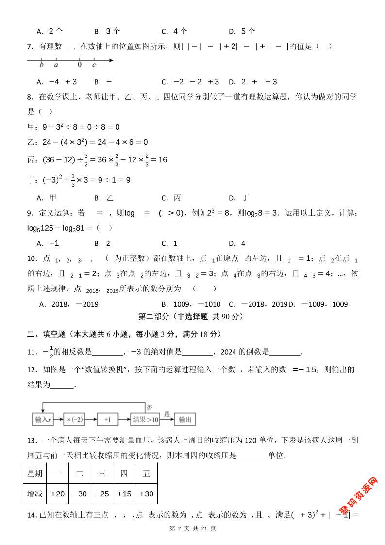 - 七年级上数学期末考试卷02(人教版) 2025-12-21