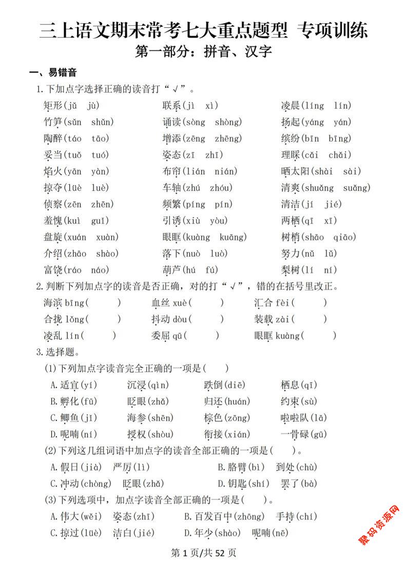 聚码网 三年级 新三上语文期末复习常考七大重点题型专项训练(含答案66页) http://www.appstore168.com/105343.html